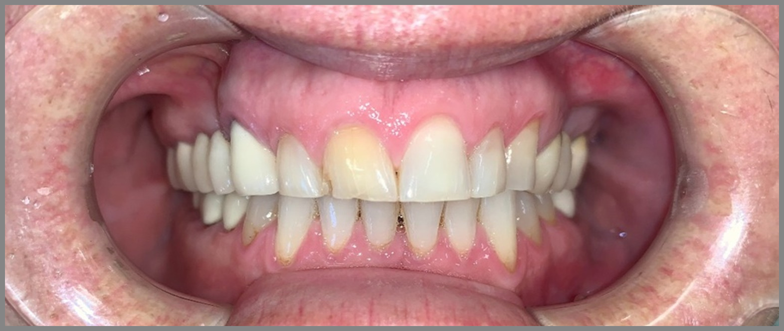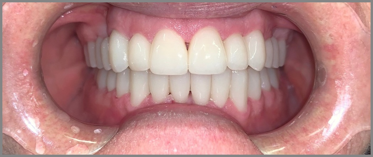 Fehlende Zähne im Ober- und Unterkiefer führten zu Schwierigkeiten beim Kauen und Sprechen. Nachher: Die Implantate und die Stegbrücke sorgten für eine stabile, funktionale und ästhetische Lösung.
